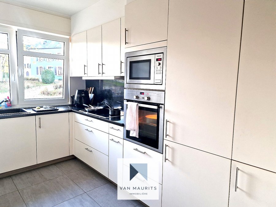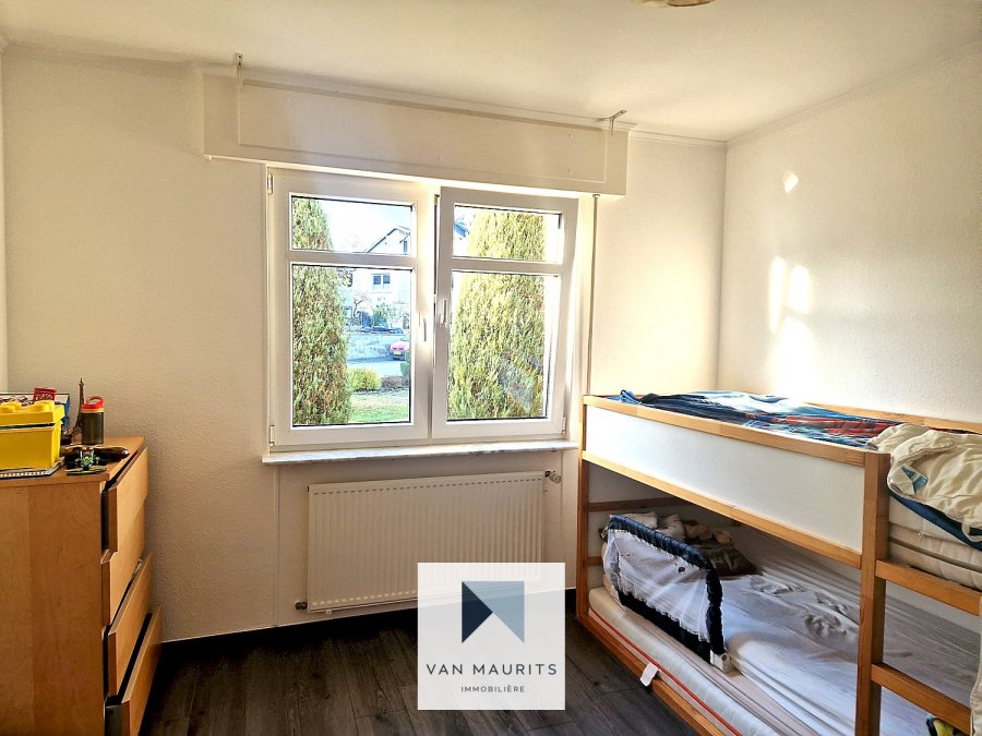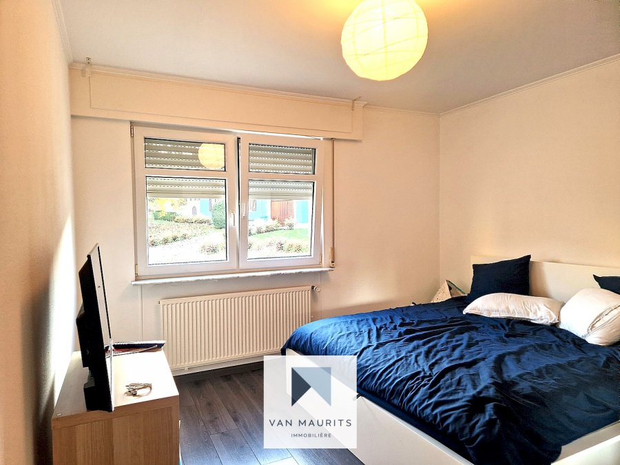Situated in Gonderange, in the dynamic and sought-after municipality of Junglinster, this apartment is located on the ground floor of a well-maintained building and has a total area of ± 97 m², of which ± 81 m² is living space. It is arranged as follows:An entrance hall of ± 8 m² leads to a bright living room of ± 31 m² giving access to a balcony ± 3 m², a separate equipped and fitted kitchen of ± 10 m², two bedrooms of ± 12 m² and ± 14 m², as well as a bathroom of ± 5 m².