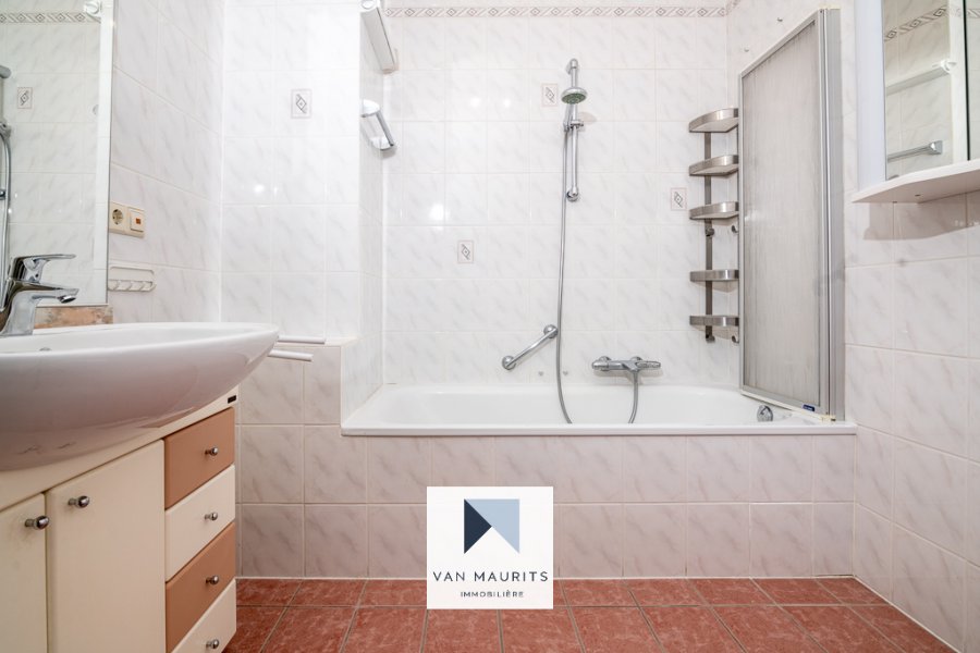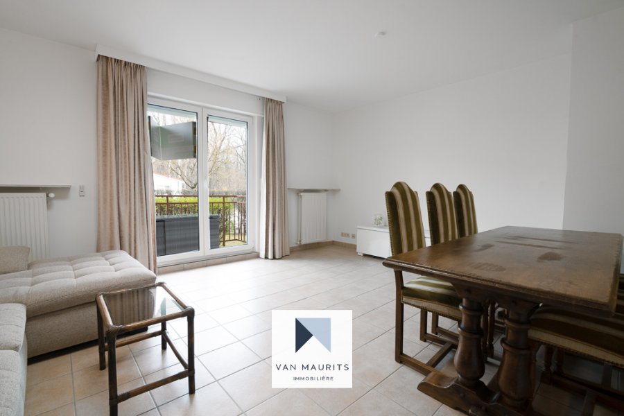 Situé à Roodt-sur-Syre, au rez-de-chaussée d'une résidence, cet appartement meublé à louer d'une surface habitable de ± 80 m² avec balcon et 2 emplacements se compose comme suit:Un hall d'entrée ± 7 m² dessert une cuisine aménagée et équipée (séparé) de ± 8 m², un séjour salon salle à manger de ± 24 m² avec un balcon de ± 4 m², un palier de nuit de ± 3 m² desservant 2 chambres de ± 13 m² et ± 17m², une salle de bain de ± 6 m² (bain, lavabo, wc), un vestiaire de ± 1 m² et un débarras de ± 2 m².