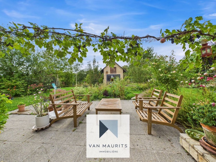 Au rez-de-chaussée, un hall d'entrée de ± 17 m² dessert une cuisine aménagée et entièrement équipée de ± 17 m² avec poêle à bois, un salon / salle à manger de ± 12 m² séparée avec passe plats, un séjour de ± 19 m². Cuisine et salon donnent accès à une terrasse de ± 10 m² et à une partie du jardin avec abri de jardin.