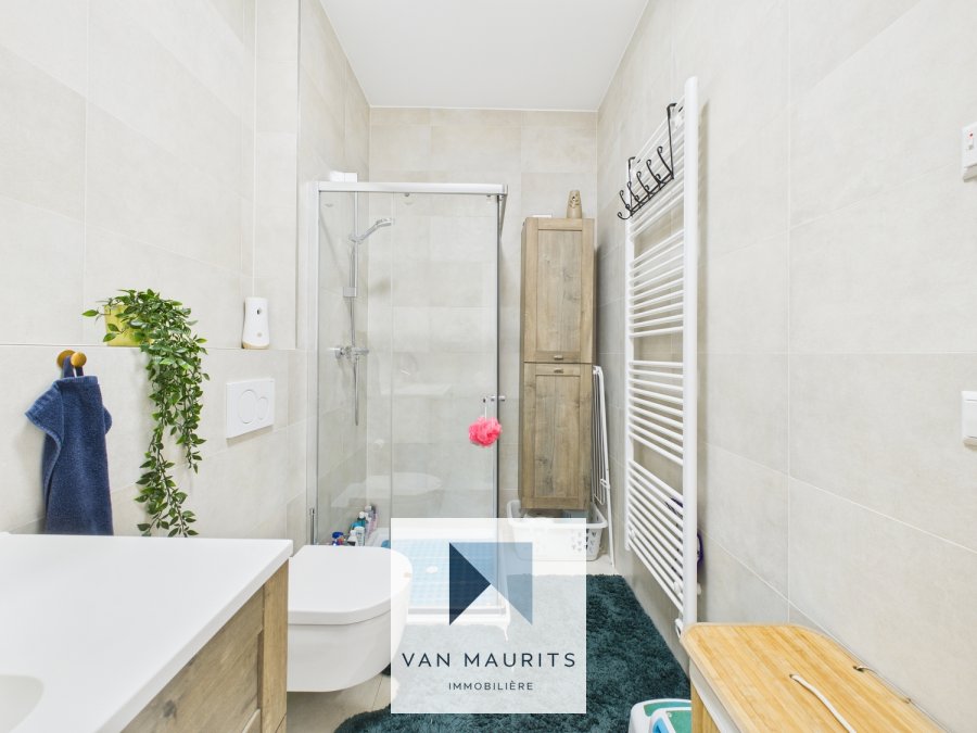 Le hall d'entrée de ± 6 m² avec vestiaire de ± 2 m² mène vers un séjour lumineux de ± 33 m² comprenant le salon, la salle à manger et une cuisine ouverte entièrement équipée et aménagée. L'agencement fluide de l'espace de vie apporte un réel confort au quotidien. La partie nuit se compose de deux chambres de ± 12 et 15 m², desservies par un couloir de ± 4 m², ainsi que d'une salle de douche de ± 5 m² et d'un wc séparé de ± 2 m².