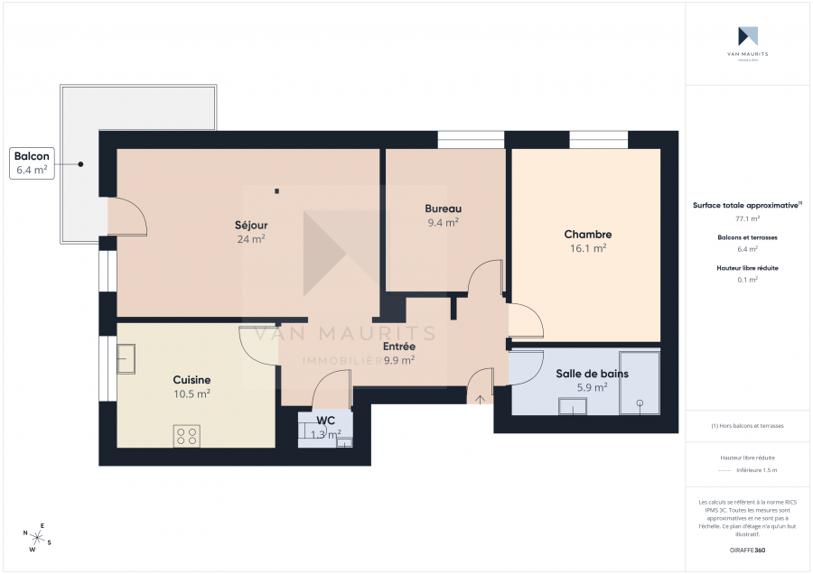 - Balcon : Un extérieur accessible depuis l'appartement, orienté côté jardin pour plus de tranquillité.