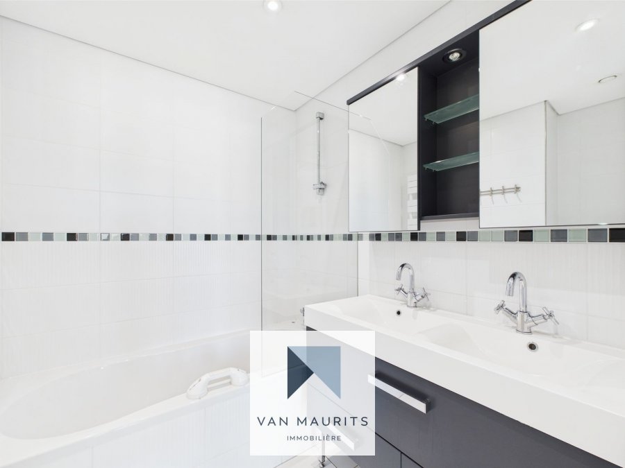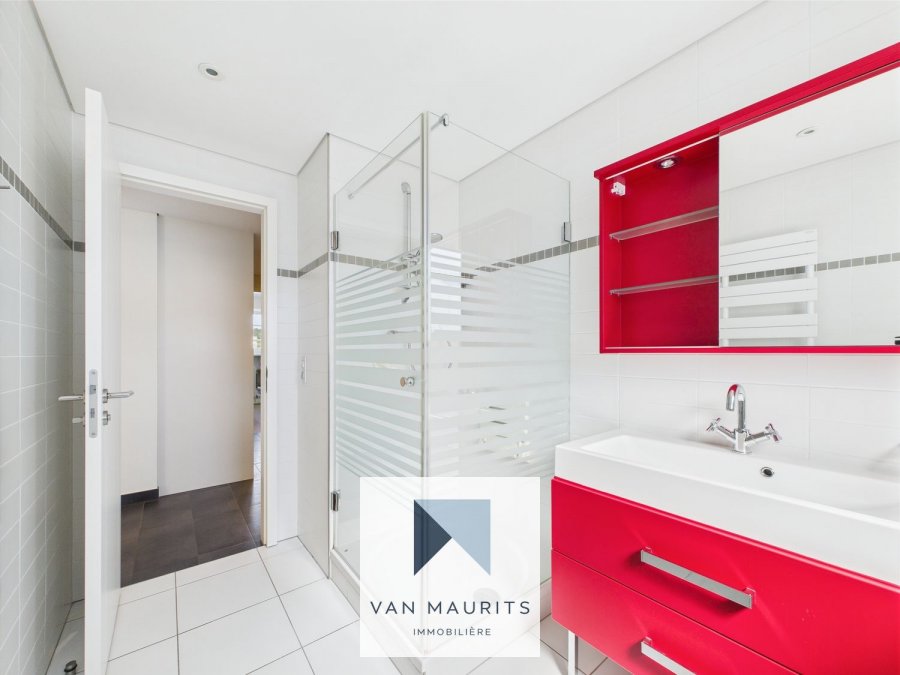 Au troisième, dernier étage, le hall d'entrée de ± 4 m² dessert un couloir de ± 3 m², le séjour de ± 60 m² avec un accès à la terrasse (avec pergola) de ± 30 m² , la cuisine (équipée AEG) ouverte de ± 12 m², une buanderie de ± 2 m² et un wc séparé de ± 2 m². Ensuite un palier de nuit de ± 4 m², trois chambres de ± 10, 13 et 13 m² (avec les armoires encastrées) dont une avec accès à la terrasse, une salle de bain de ± 4 m² (avec double vasque, baignoire et wc), un bureau de ± 12 m² pouvant être aménagé en chambre ainsi qu'une salle de douche de ± 5 m² (avec lavabo, douche et sèche-serviette).