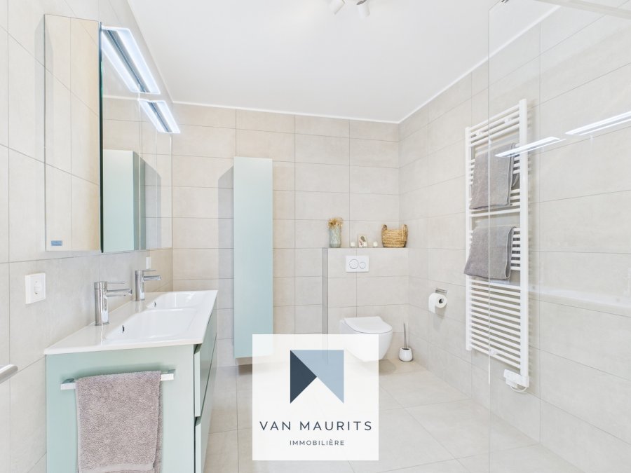 Au rez-de-chaussée, le hall d'entrée de ± 13 m² dessert 2 chambres à coucher de ± 16 m² chacune, une chambre de ± 26 m² avec un «walk-in dressing» donnant accès à une terrasse de ± 36 m², une salle de bain de ± 9 m² (baignoire, douche, double lavabo, wc, chauffe serviette), une salle de douche de ± 6 m² (douche, double lavabo, wc, chauffe serviette) et un débarras de ± 4 m² (avec raccord pour le sèche-linge et la machine à laver).