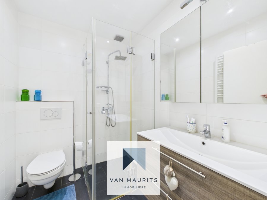 La partie nuit comprend un palier de ± 1 m², deux chambres de ± 9 et 14 m², une salle de douche de ± 4 m² (avec double vasque, douche à l'italienne, WC et sèche-serviettes) ainsi qu'un WC séparé de ± 2 m².