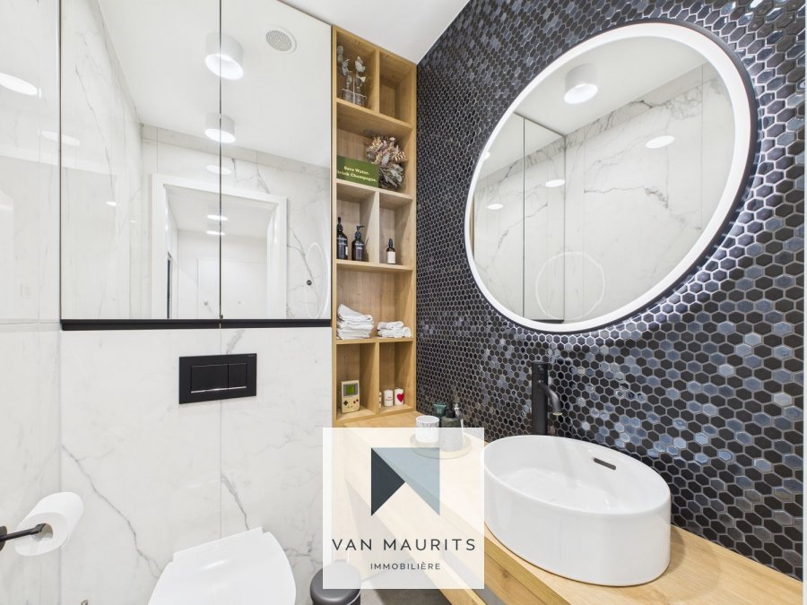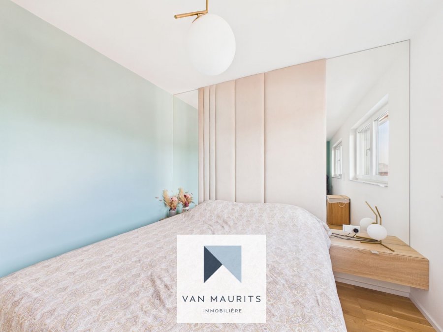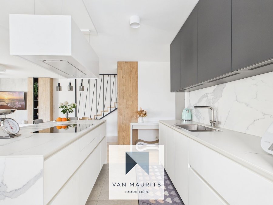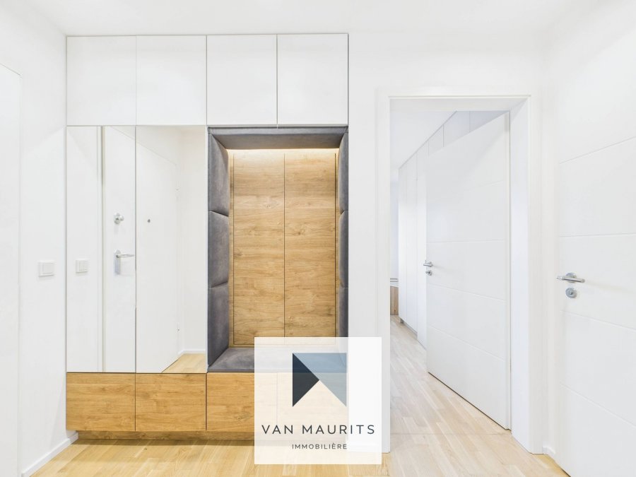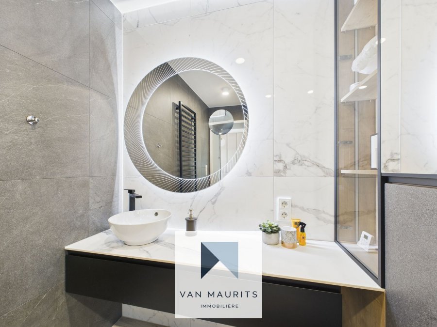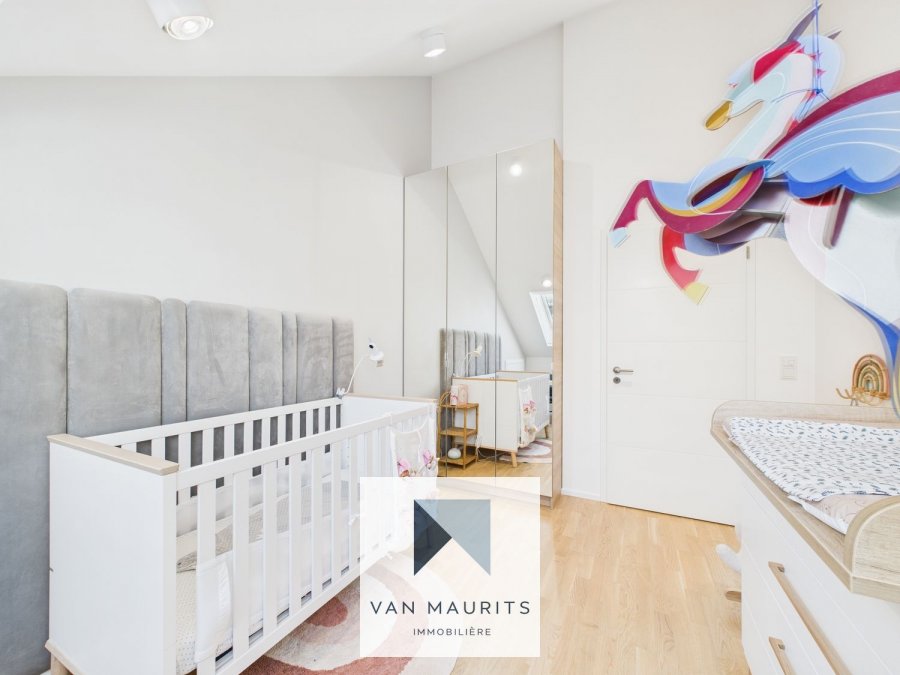 Au 3ème étage, le hall d'entrée de ± 6 m² (avec armoire encastrée) s'ouvre sur un espace ouvert composé d'un séjour/salle à manger/cuisine de ± 43 m² avec un accès une la terrasse de ± 24 m², et sur un cellier de ± 3 m². Sur ce niveau se trouvent également une chambre de ± 15 m² (avec coin bureau et dressing encastré), une salle de douche de ± 5 m² (avec lavabo, douche et wc), et un wc séparé.