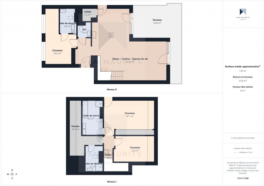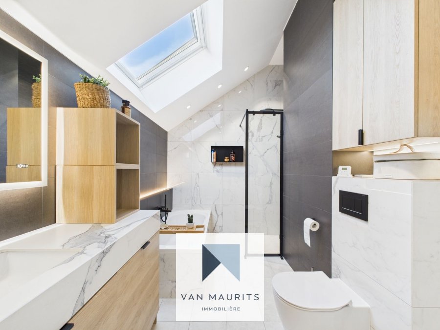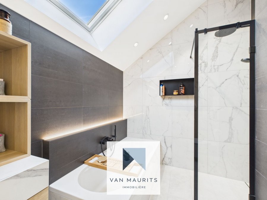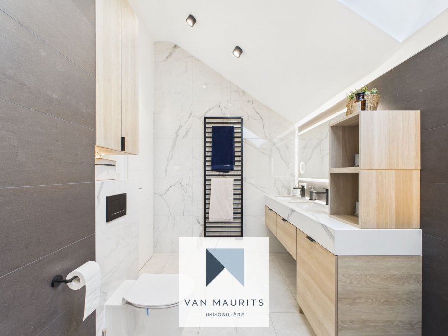 Au 4ème étage, accessible par un escalier en chêne, un palier de nuit mène à deux chambres de ± 13 et de 21m², chacune avec un dressing sur mesure. Une salle de bain de ± 9 m² (avec double vasque, baignoire, douche et wc), une salle de douche de ± 5 m² (avec lavabo, douche et wc) et un grenier complètent ce niveau.