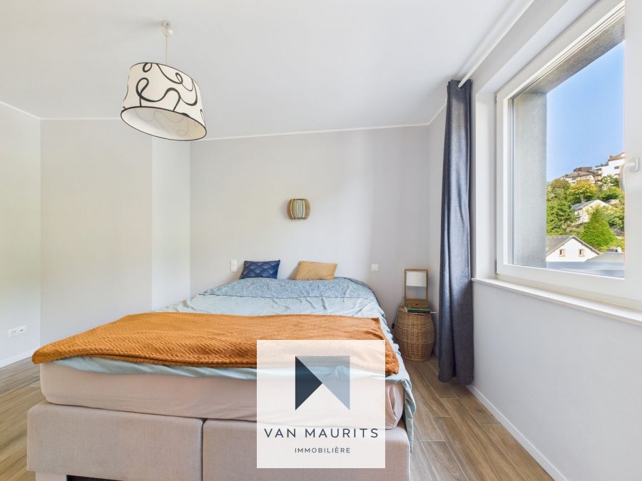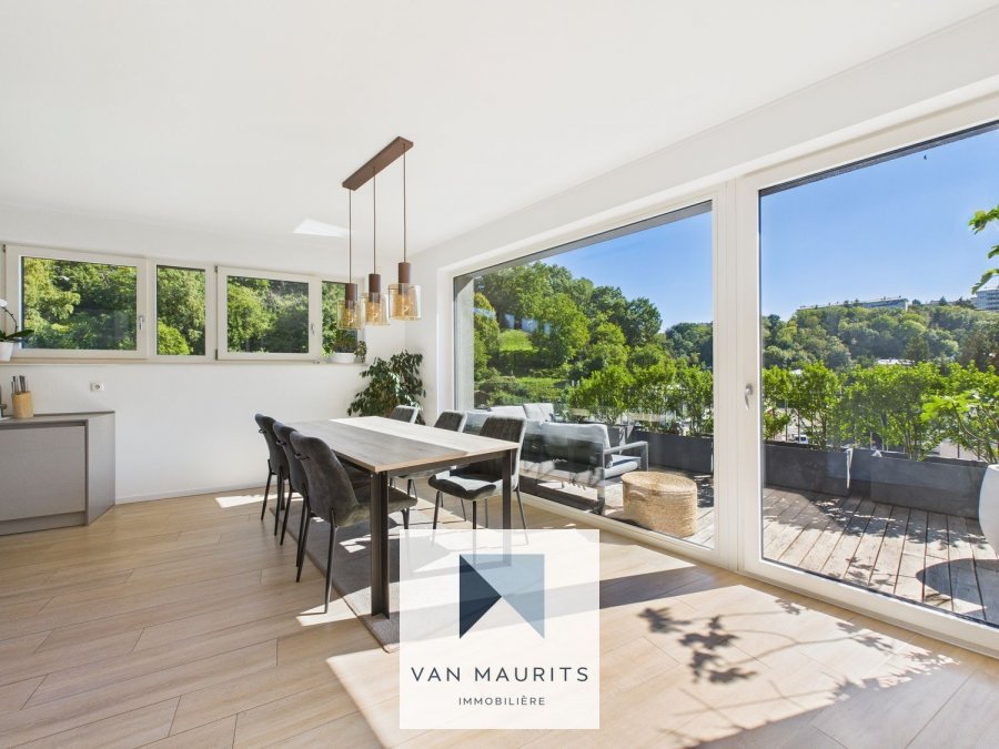 Au 4ème et dernier étage, un hall d'entrée de ± 10 m² nous conduit vers un espace ouvert de ± 57 m², composé d'un ensemble salon/salle à manger/cuisine. Une grande baie vitrée donne accès à une terrasse en bois, orientée au sud, avec sa marquise électrique et une vue panoramique sur la vallée de Rollingergrund. Cet étage possède également une chambre de ± 18 m² avec sa salle de bain de ± 5 m² (baignoire et lavabo) et un wc séparé de ± 4 m² (avec des branchements pour la machine à laver).