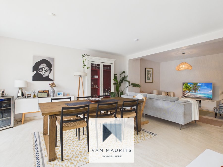 La porte d'entrée s'ouvre sur un hall d'entrée de ± 14 m² avec armoires intégrées desservant l'espace de vie de ± 43 m² composée d'un séjour et d'une cuisine équipée et aménagée ouverte sur la salle à manger et donnant accès à une belle terrasse de ± 66 m², une chambre de ± 13 m² et une seconde chambre de ± 21 m² avec un dressing attenant de ± 4 m², une salle de bains de ± 7 m² et un wc séparé ± 1.5 m².