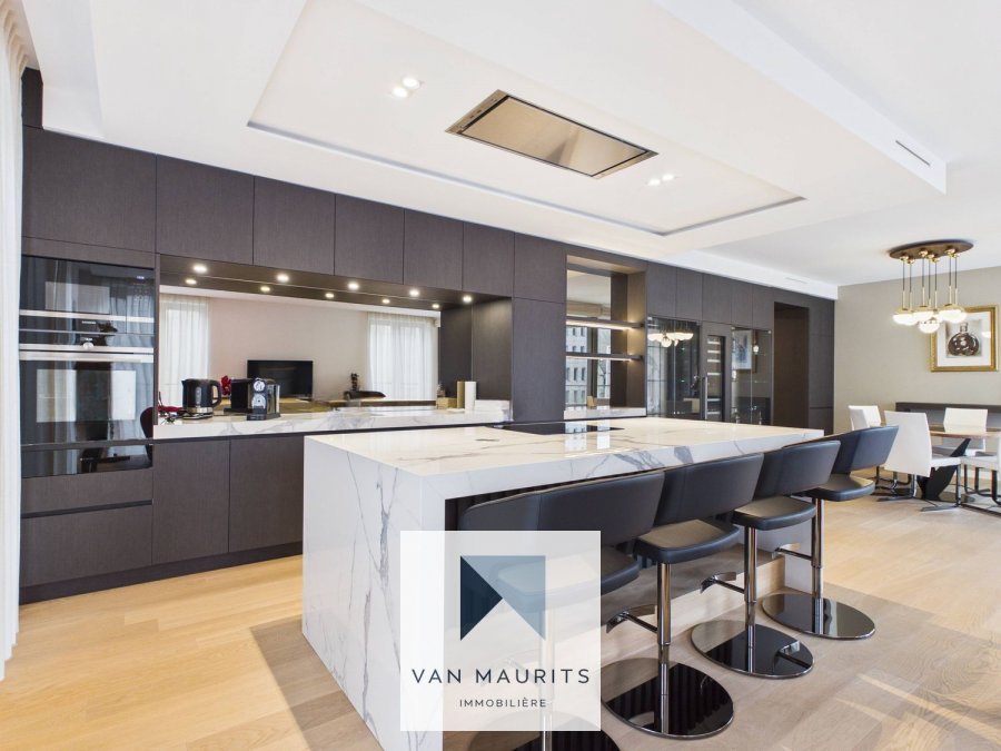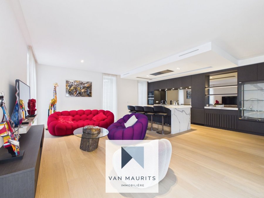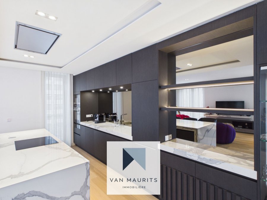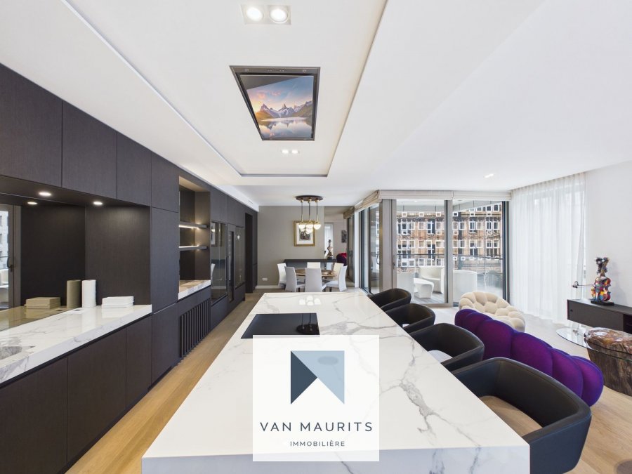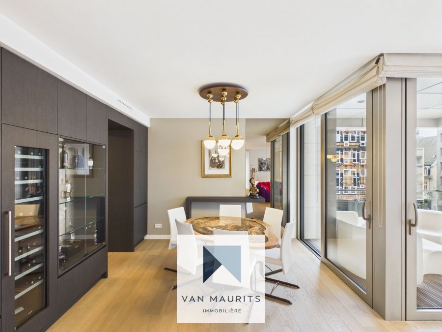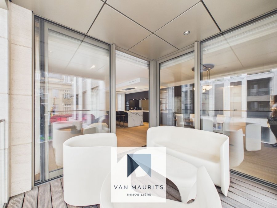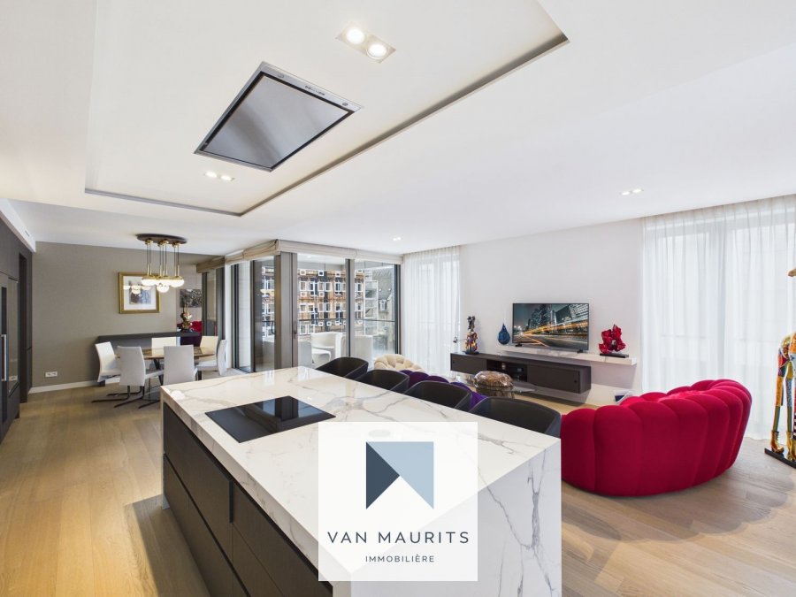 Bien rare, par sa situation hyper centrale et ses finitions haut de gamme, construit en 2017, il est situé au 2ème étage de la résidence "Royal-Hamilius" (12, rue Aldringen), en plein cœur du secteur piétonnier et disposant de 2 garages en sous-sol. Le bien est en excellent état, il peut être vendu meublé et offre une surface nette habitable de ± 113 m². Il se présente comme suit :Au 2ème étage, le hall d'entrée de ± 10 m² (avec plusieurs armoires encastrées) dessert un séjour lumineux de ± 60 m² intégrant une cuisine moderne ouverte avec un accès à une loggia couverte et orientée au sud de ± 8 m².
