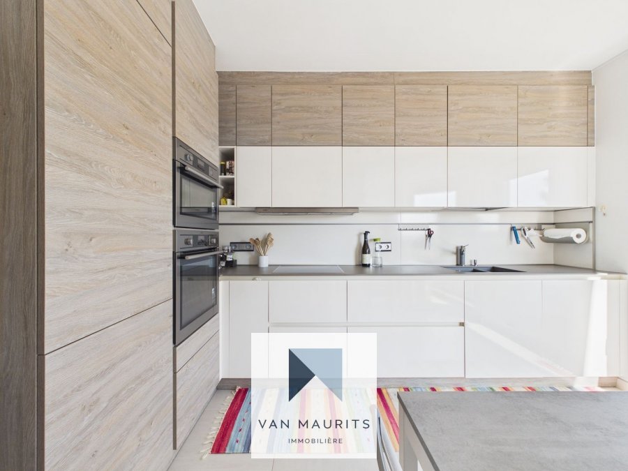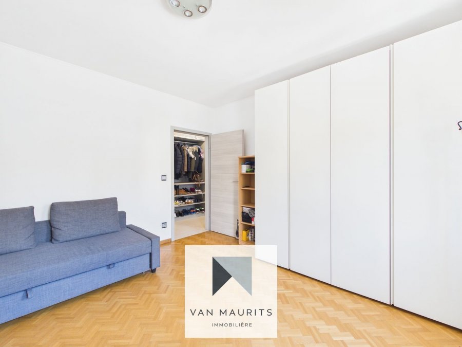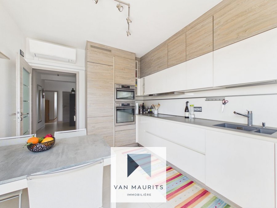 Au 1er étage desservi par un ascenseur, le hall d'entrée de ± 11 m² (avec armoire encastrée) s'ouvre sur un double séjour/salle à manger de ± 32 m² avec un accès au balcon de ± 4 m², avec vue sur le parc privé de la résidence. A côté se trouve une cuisine de ± 11m² (avec sortie au balcon). Ensuite, le couloir vous conduit vers la partie nuit, composée de deux chambres à coucher, chacune de ± 16 m² et de deux salles de bains de ± 3,5 et 6 m².