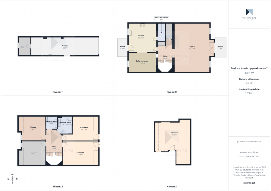 Au 3ème étage se trouve une spacieuse suite parentale de ± 34 m² avec un coin bureau et de nombreux rangements.