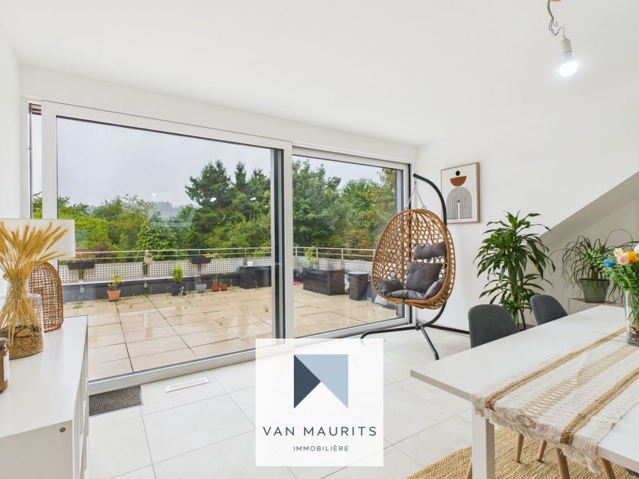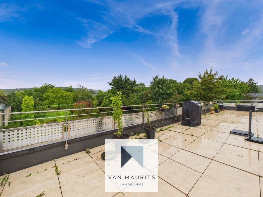 Une terrasse de ± 99 m² est accessible par le séjour et la chambre parentale.