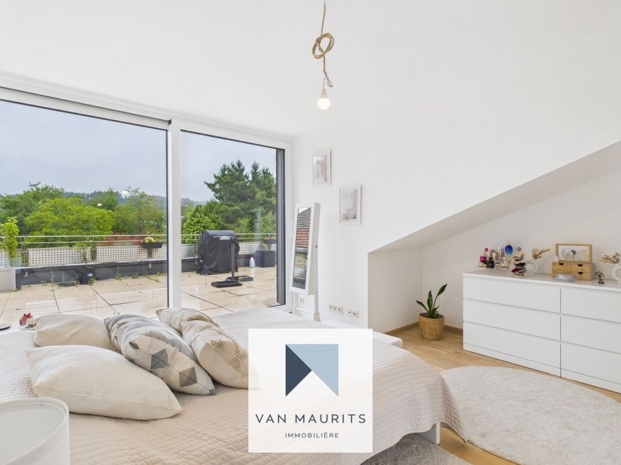 Situé à Oetrange, dans la commune de Contern, cet penthouse contemporain au deuxième étage d'un immeuble récent construit en 2023, offre une surface habitable de ± 97 m² et se trouve dans une zone résidentielle calme. Orienté sud-ouest, il bénéficie d'une belle luminosité naturelle tout au long de la journée. En très bon état et immédiatement disponible, ce bien se présente comme suit :Au 2ème étage, une entrée de ± 3 m² dessert un séjour de ± 43 m² avec une cuisine ouverte (équipée), un couloir de ± 4 m², une chambre parentale de ± 20 m² avec un dressing de ± 7 m² et une salle de douche de ± 2 m² (avec double lavabo, douche à l'italienne et wc), une seconde chambre de ± 11 m², une salle de bain de ± 6 m² (avec lavabo et baignoire) ainsi qu'un wc séparé de ± 2 m².