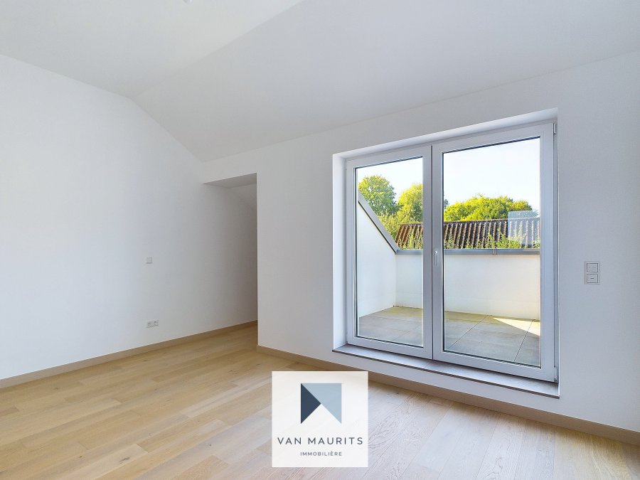 L'espace nuit comprend deux chambres (15 m² et 18 m²), une salle de bain élégante de 7 m² (baignoire, double lavabo, WC), et un espace bureau de 16 m², facilement transformable en chambre supplémentaire, avec accès à une terrasse de ± 13 m².