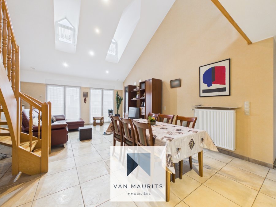 Situé dans une zone résidentielle à Sandweiler, cet appartement/duplex spacieux et lumineux, construit en 2003 se développe sur deux niveaux et offre une surface habitable d'environ 189 m². En bon état général, il séduit par ses volumes généreux, sa configuration familiale et ses espaces extérieurs avec vue dégagée. L'appartement se présente comme suit :Au troisième étage, un hall d'entrée de ± 9 m² avec vestiaire de ± 6 m² dessert le séjour de ± 37 m² constituant un espace de vie confortable et lumineux, avec un accès direct à la terrasse de ± 5 m² ainsi qu'au balcon de ± 4 m², une cuisine séparée de ± 17 m², trois chambres de ± 14 m² chacune, dont une avec dressing de ± 4 m². Une salle de bain de ± 9 m² (avec double lavabo, baignoire, douche et coin buanderie) complète cet étage, ainsi qu'un wc séparé de ± 2 m² (avec lavabo).