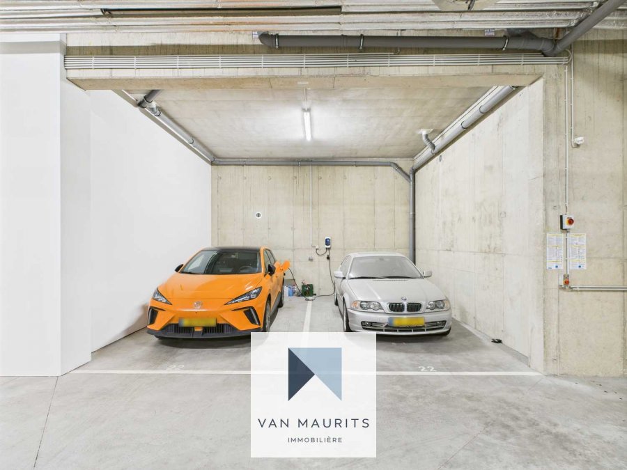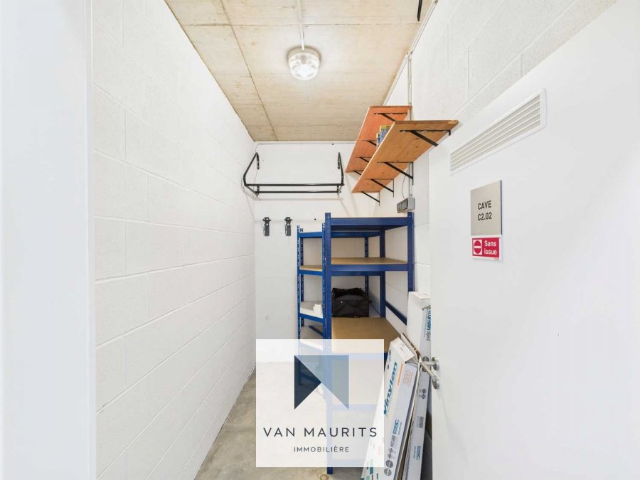Au même étage que l'appartement est situé une cave privative de ± 5 m² (n° 2.2) et de deux emplacements intérieur de ± 17 m² chacun (n°22 et 22)(Autorisation de la copropriété d'insatallé un double ascenseur pour doubler le nombre de places). Un emplacement dans la buanderie (à côté de la fenêtre) et un local vélos commun.