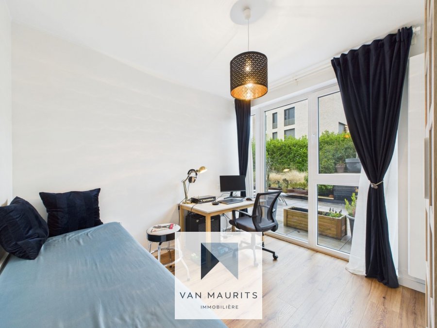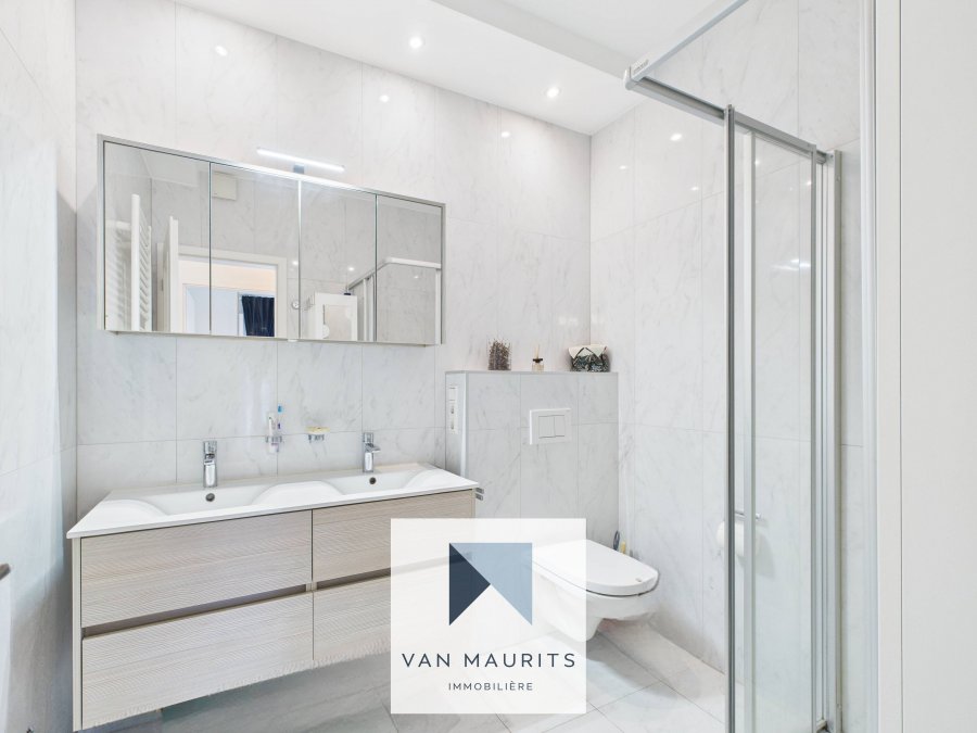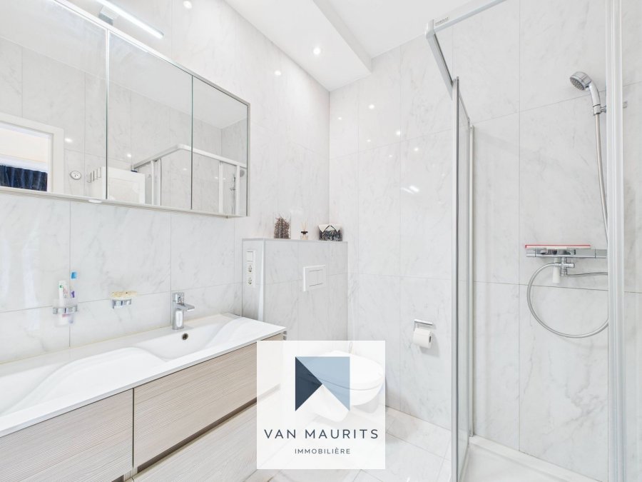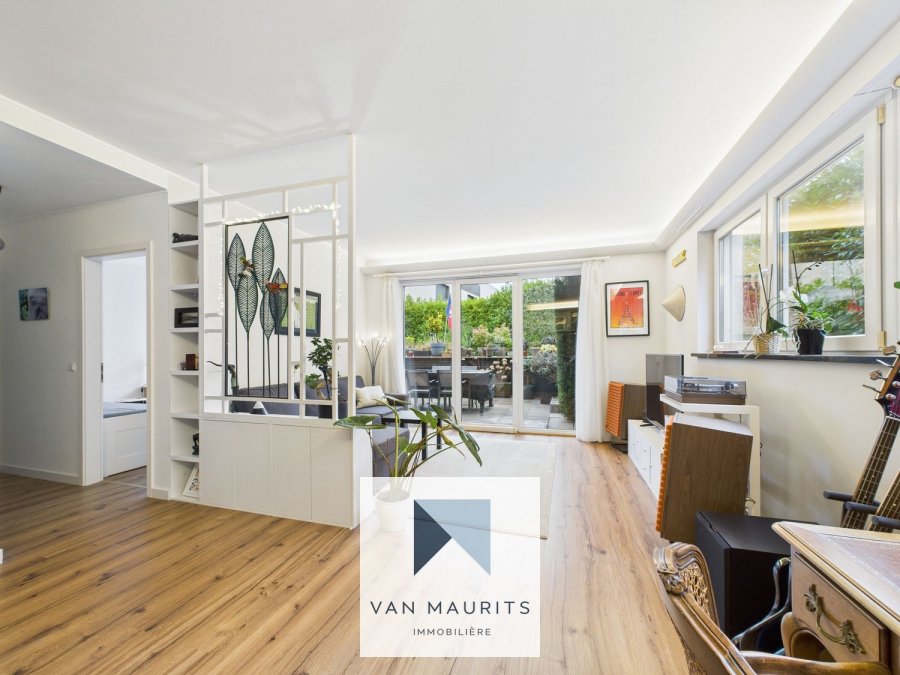 Situé au cœur de Steinsel (15, rue de l'Ecole), au calme, à 10 min. des institutions européennes de Kirchberg et du centre, cet appartement lumineux de ± de 110 m² habitables possède une grande terrasse de ± de 52 m² orientée au sud. Il se compose comme suit :au RDC, une entrée dessert une cuisine avec salle à manger de ± 38 m² (avec une sortie sur une terrasse de ± 15 m²) et un salon de ± 27 m² orienté au sud (avec une sortie sur une terrasse de ± 37 m²) ; deux chambres de ± 10 et 22 m² ; une salle de douche de ± 5 m² (douche italienne, double vasque et wc) ; un wc séparé.