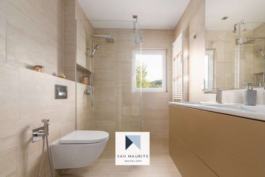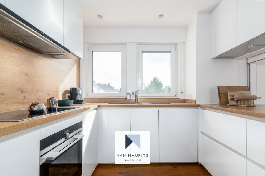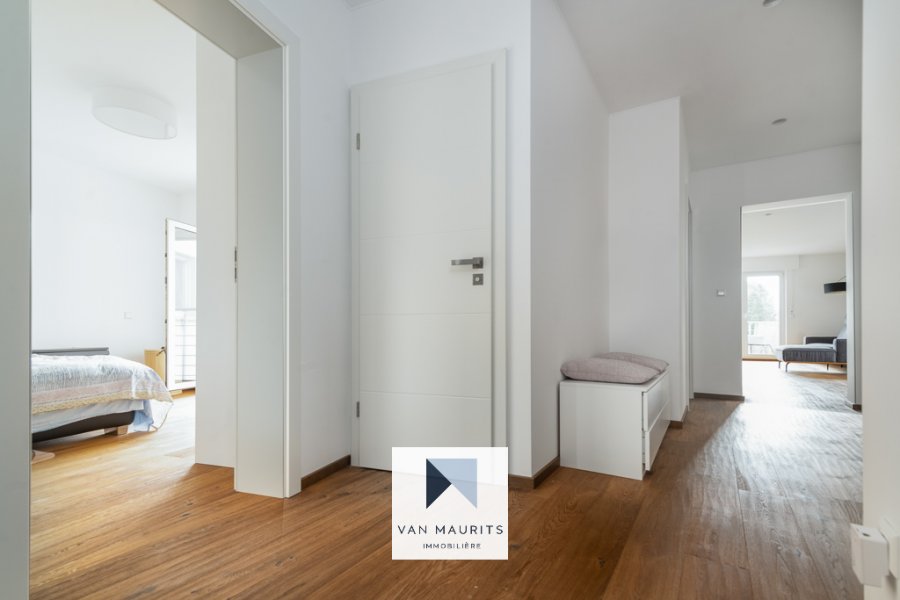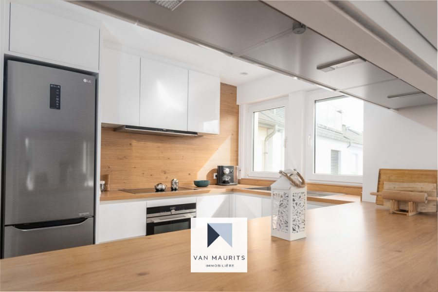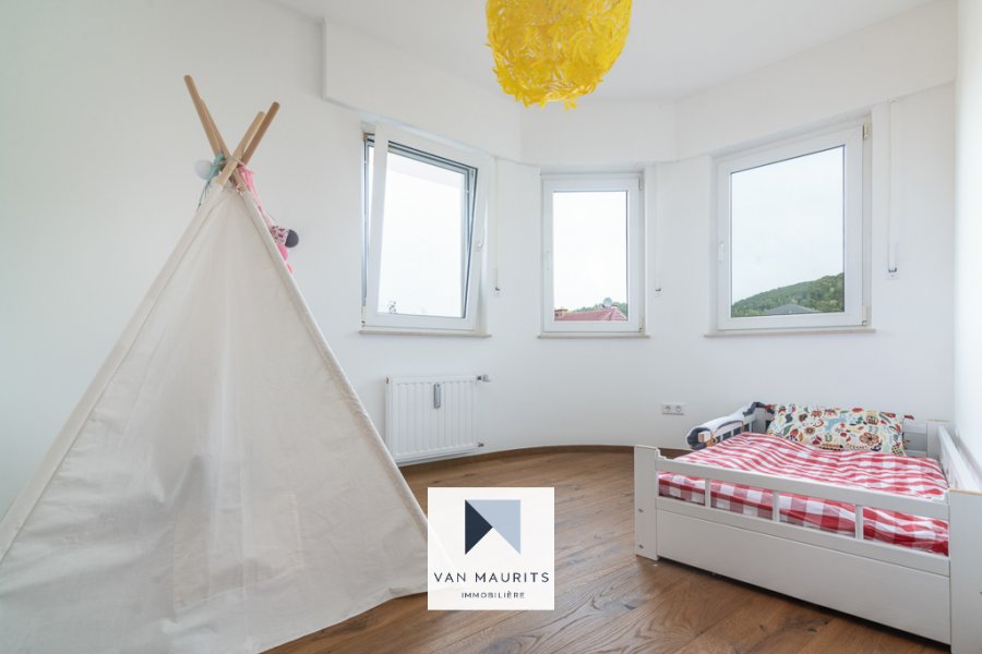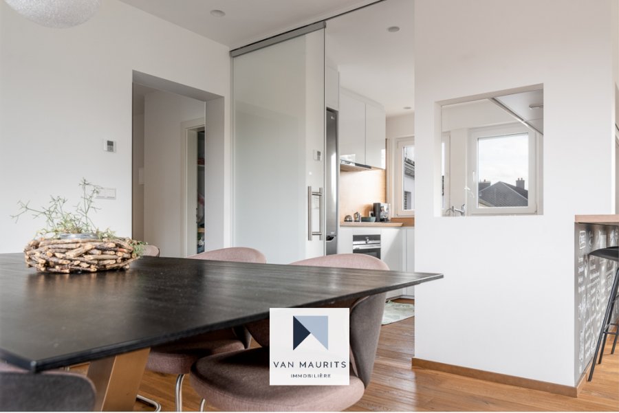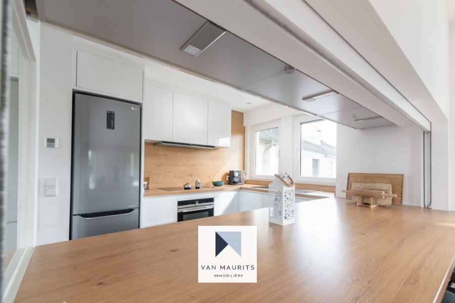 Situé à Walferdange, au calme (40, rue grande-Duchesse Charlotte), à 10 min. de Kirchberg et du centre, dans une résidence de trois unités, ce spacieux penthouse rénové en 2020 dispose d'une surface nette ± de 100 m². Il se compose comme suit :Au 2ème et dernier étage, un palier de ± 8 m² dessert un salon de ± 34 m² (avec balcon de ± 4 m²) avec une cuisine séparée de ± 8 m² ; trois chambres de ± 10, 12 et 14 m² ; une salle de douche de ± 5 m² (douche, double vasque, wc) ; un débarras (avec l'emplacement pour la machine à laver) et un wc séparé.