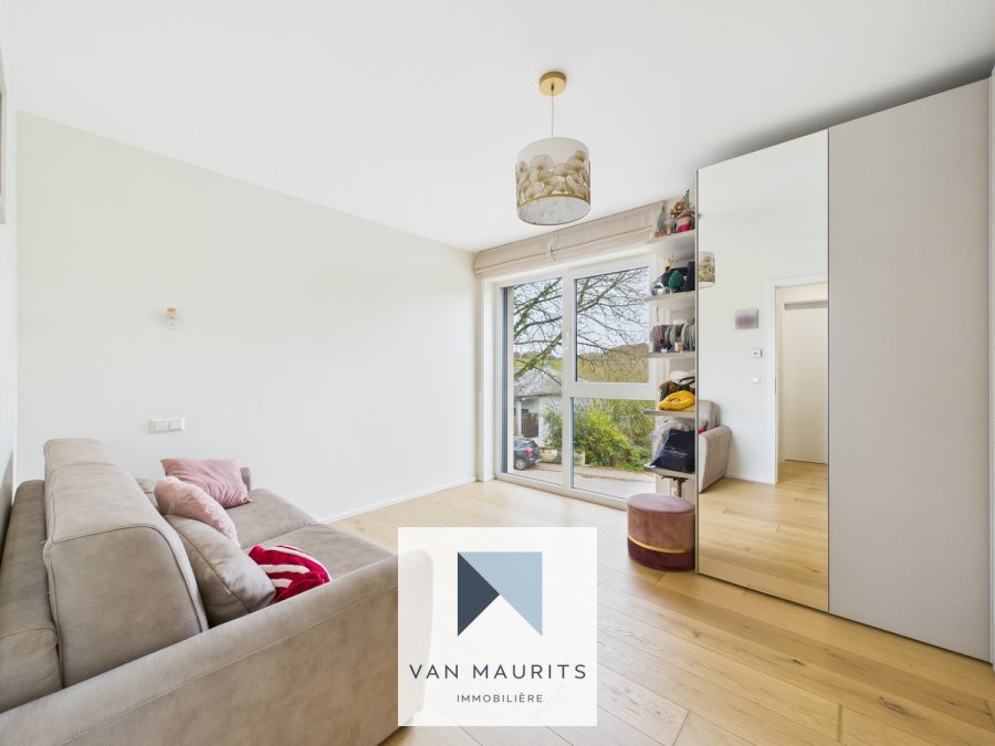 - Espace de vie lumineux : Un hall d'entrée accueillant mène à un vaste salon/ salle à manger/ cuisine de +/- 38 m², baigné de lumière naturelle grâce à de grandes baies vitrées.