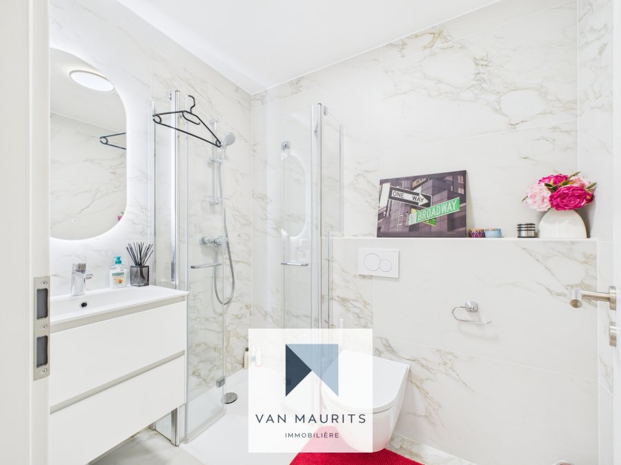 - Parking : Une place de parking privative de +/- 18 m² est disponible au sous-sol de la résidence et une place de parking privative à l'extérieur de la résidence de +/- 12m².