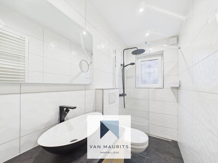 Situé dans le village de Berchem, cette maison de construction 1958 et complètement rénovée en 2014 a une surface habitable de ± 160 m² pour une surface totale de ± 230 m² et se compose comme suit :Au sous-sol, un spacieux garage pour une voiture ainsi que du stockage d'une surface de ± 32 m², une buanderie de ± 14 m² et une pièce multifonctionnelle de ± 9 m² avec cage d'escalier mène au rez-de-chaussée.