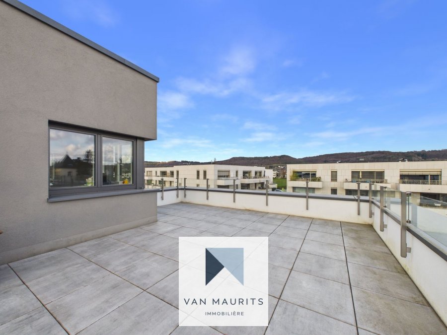 Au dernier étage, se trouvent deux espaces supplémentaires bureau/hobby de ± 11 m² et une chambre de ± 16 m² laquelle communique avec une belle terrasse de ± 36 m² (orientée au sud) avec une salle de douche de ± 6 m² (douche, lavabo et wc).