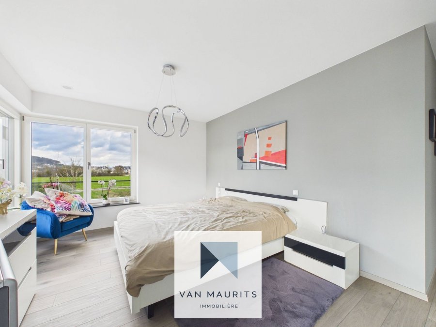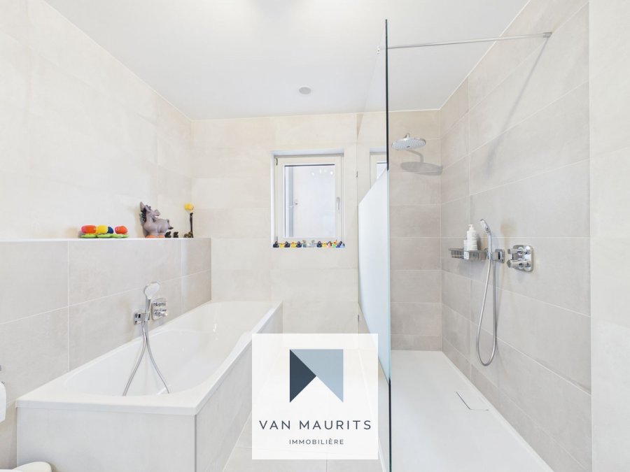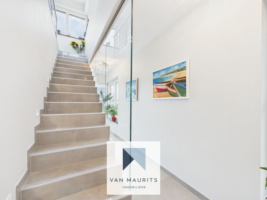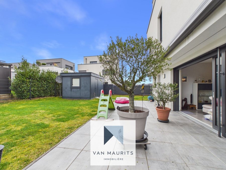 Située à Bereldange (25, rue des Roses), dans une zone résidentielle très calme, cette agréable maison de l'année 2018 se situe sur un terrain de 3a 69ca. Elle dispose d'un passeport énergétique A-A et possède une surface habitable de ± 202 m² pour une surface totale de ± 250 m². Voici sa composition :Au rez-de-chaussée, une entrée de ± 16 m² (avec armoires sur mesure) vous conduit vers un salon de ± 40 m² communiquant avec une terrasse de ± 35 m², orientée ouest avec une vue sur le jardin. Vous y découvrirez également une cuisine indépendante de ± 15 m² ainsi qu'une buanderie/chaufferie de ± 15 m² (avec une sortie au jardin), un wc séparé et un double garage de ± 35 m² (côte-à-côte).