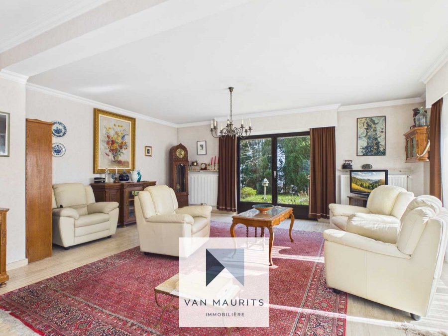 Le séjour spacieux et lumineux de ± 60 m² donne accès direct à la terrasse de ± 25 m², idéale pour profiter du jardin.