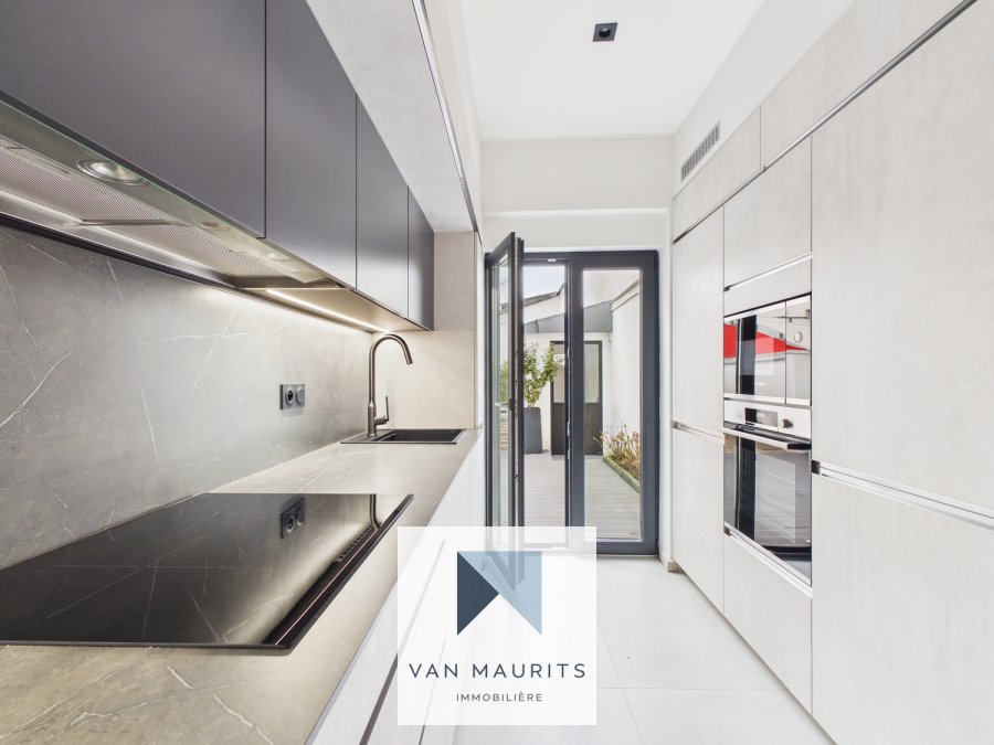 Cuisine neuve entièrement équipée avec accès direct à l'extérieur