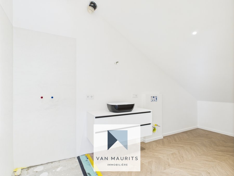Le palier dessert deux grandes chambres de ±37 m² et ±25 m², chacune avec sa salle de douche privative. Une pré-installation pour une baignoire balnéo existe dans la grande chambre.