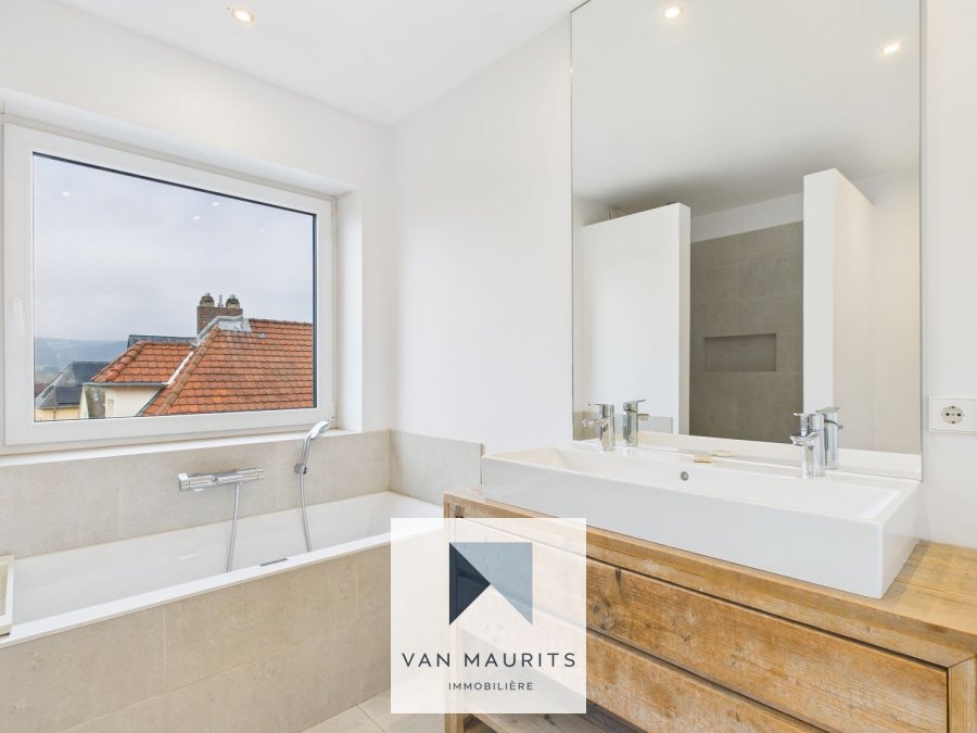Située à Helmsange (commune de Walferdange, 56, rue Jean Mercatoris), dans une zone résidentielle très calme, en position dominante, cette agréable maison entièrement rénovée en 2022 se situe sur un terrain de 8a 15ca et possède une surface habitable de ± 200 m² pour une surface totale de ± 310 m². Voici sa composition :Au rez-de-chaussée : une entrée de ± 6 m² (avec armoire encastrée) s'ouvre sur un double salon/salle à manger de ± 67 m² avec une cheminée et communiquant avec une terrasse de ± 20 m² avec une vue sur le jardin et exposée au sud. Vous y découvrirez également une cuisine ouverte de ± 18 m² et un wc séparé.