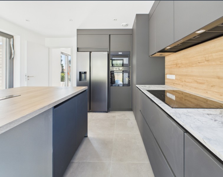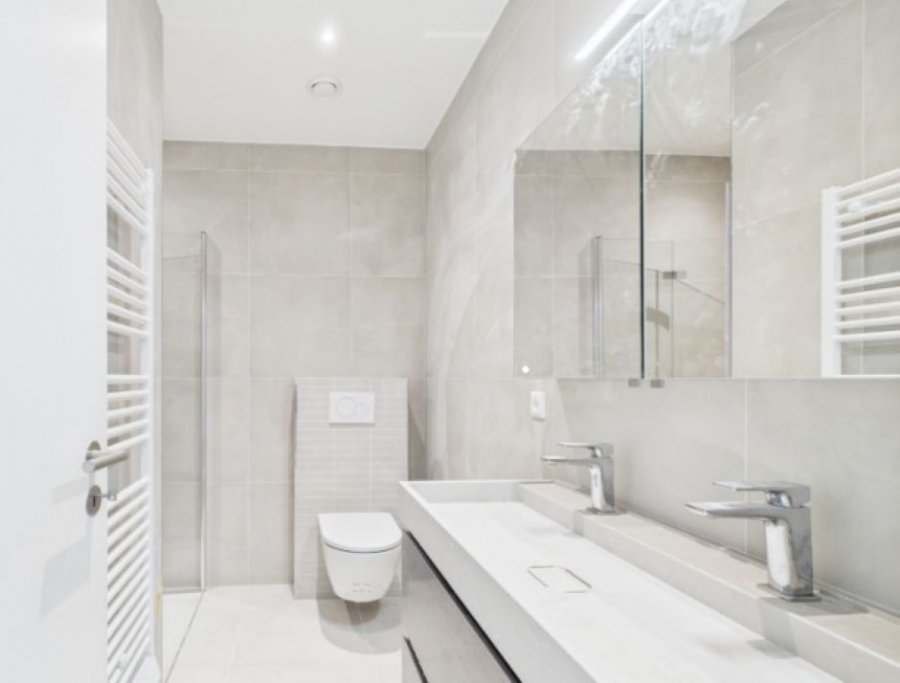 Le premier étage accueille l'espace de vie principal avec une cuisine de ± 22 m² entièrement équipée et aménagée, ouverte sur un séjour de ± 24 m² et un salon de ± 8 m². Cet ensemble lumineux donne accès à deux terrasses de ± 9 et 15 m², idéales pour profiter de l'extérieur.