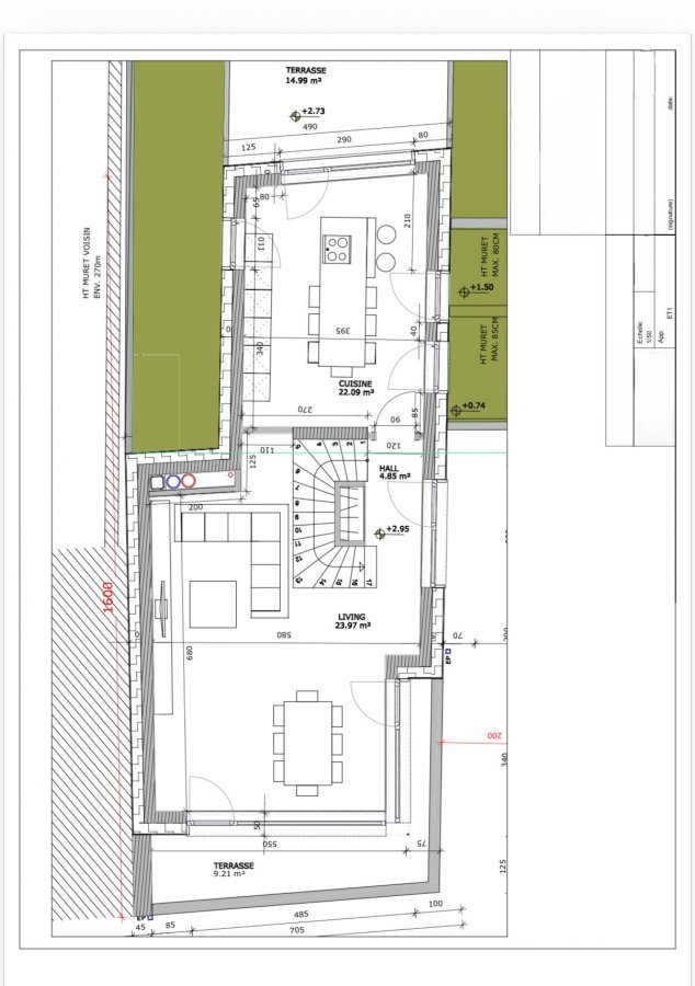 Située à Kehlen, cette maison neuve avec fin de construction prévue en 2026, offre une surface totale de ± 202 m² dont ± 155 m² habitables sur un terrain de 2.52 ares. Pensée pour un confort de vie moderne, elle bénéficie d'un agencement fonctionnel et lumineux réparti sur plusieurs niveaux.La maison se présente comme suit :