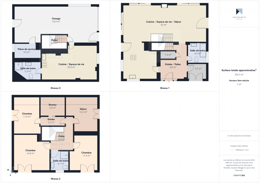 - Salles de bains : 3