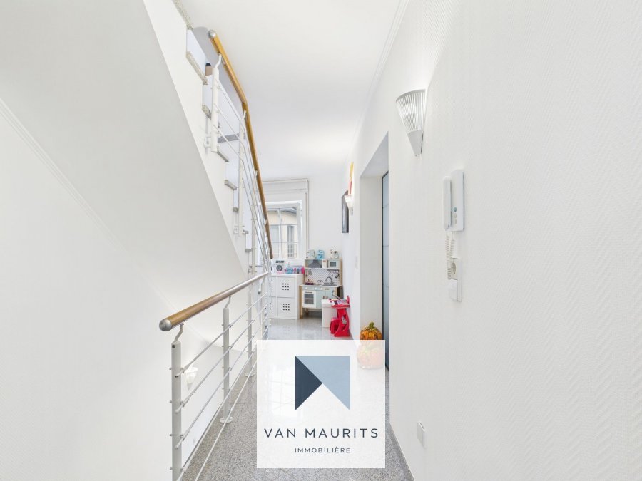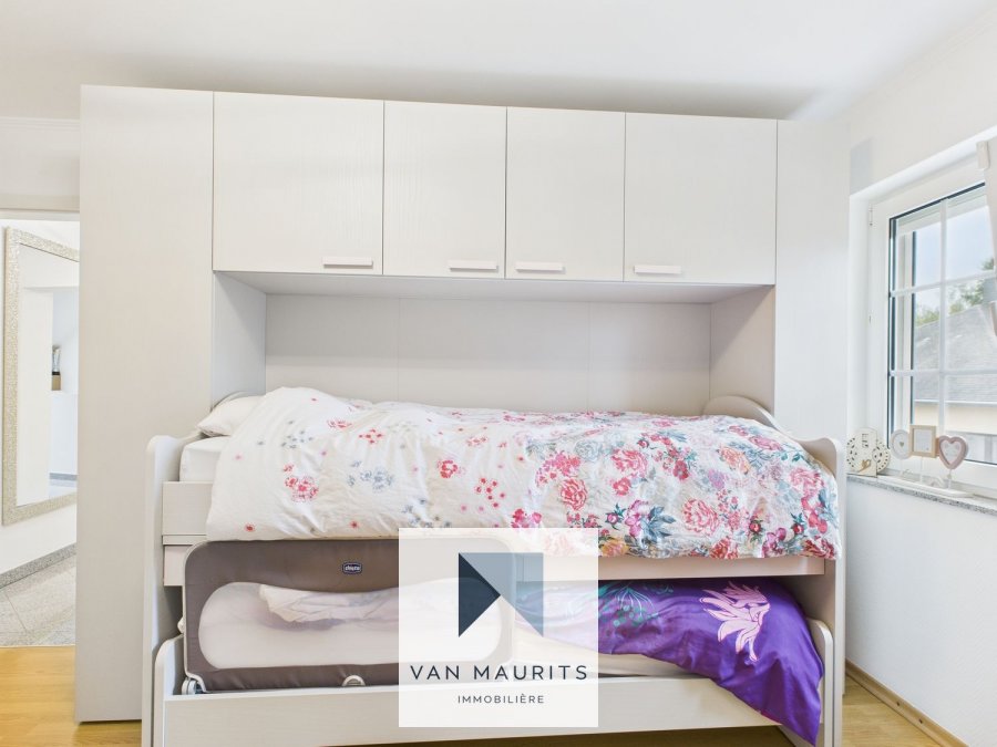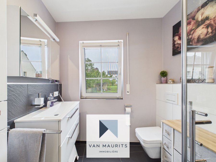 Idéalement située à Moutfort, dans une rue au calme en zone 30 et sans issue, à proximité du Kichberg et de Sandweiler, cette maison libre des 3 côtés de 2005, rénovée, est posée sur un terrain de 2,34 ares. Entièrement rénovée en 2017, elle présente une surface habitable ± 139 m², pour une surface totale ± 205 m² et se compose comme suit.Le rez-de-chaussée, comprend un hall d'entrée ± 14 m², un couloir ± 3 m² avec un accès pour la terrasse ± 20 m² et le jardin ± 160 m², un garage ± 33 m² (pour 2 voitures l'une à côté de l'autre, garage, aspirateur centralisé), une buanderie ± 4 m², une chaufferie ± 4 m², une salle de douche ± 2 m², un wc séparé ± 2 m² (lave-mains, nouveau carrelage au sol).