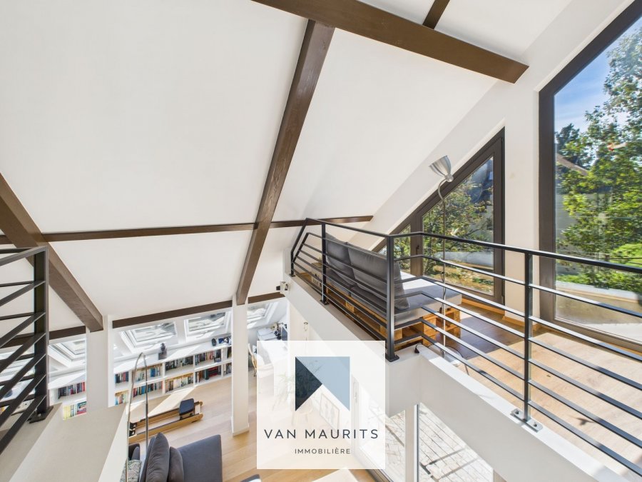 L'escalier en bois dessert le 1er étage. Une mezzanine de ± 22 m2 conduit vers deux chambres : une de ± 16 m2 et une deuxième de ± 27 m2 incluant une salle de bain privative (baignoire, double vasque, wc).