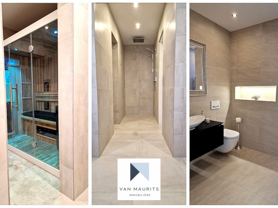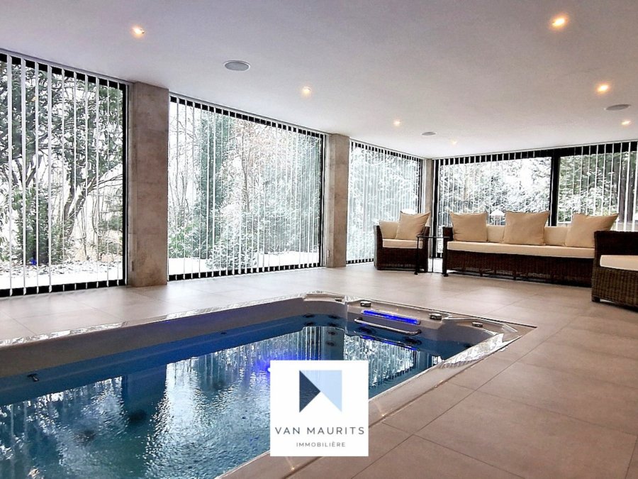 - A wellness area, including: a Finnish and infrared sauna, a walk-in shower, WC, and changing area, a swim spa with a counter-current system and whirlpool features, surrounded by large glass walls, direct access to a private terrace and the garden.