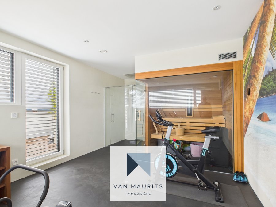A stylish 9 m² bathroom is complemented by a private sauna, located adjacent to the gym, offering a true wellness experience at home.