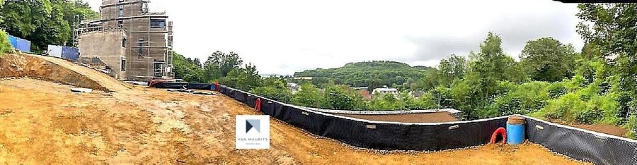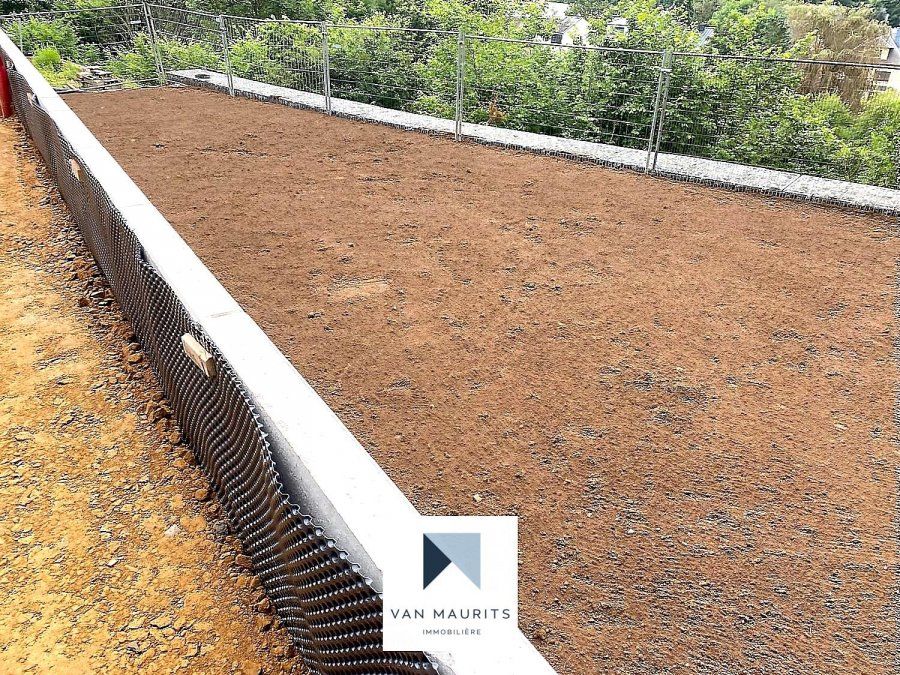 Avec une largeur de façade d'environ 24 mètres et une profondeur de ± 28 mètres côté gauche et ± 31 mètres côté droit, le terrain offre de belles possibilités d'implantation. Il bénéficie d'une exposition Est et d'une configuration en pente aménagée sur deux plateaux, permettant un projet architectural intéressant avec terrasse et extension vers le jardin. Du côté droit de la maison ainsi qu'à l'arrière, aucune construction ne sera possible ce qui offre un beau confort privatif et sans vis-à-vis.
