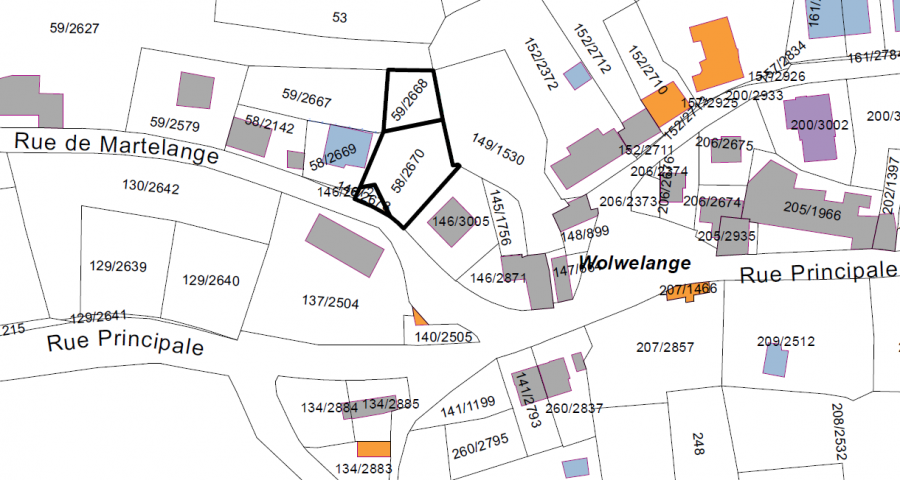 Terrain constructible à vendre à Wolwelange d'une contenance de 9.34 ares situé dans la rue de Martelange.Les parcelles concernées sont :